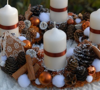 Bohatě zdobený věnec přírodninami a vánočními přízdobami....krásné perníčky jsou z filcu