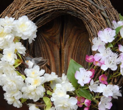 Proutěný korpus je nazdoben dokonalými látkovými jarními květy...roztomilý ptáček k tomu