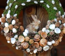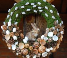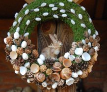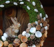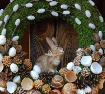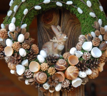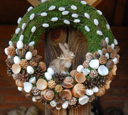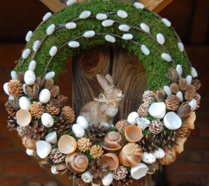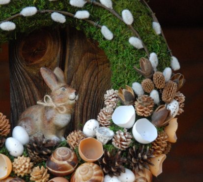 Věnec je vytvořen z přírodních materiálů, kočičky jsou umělé, ale dokonalé...krásný keramický zajíček k tomu