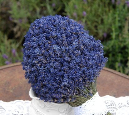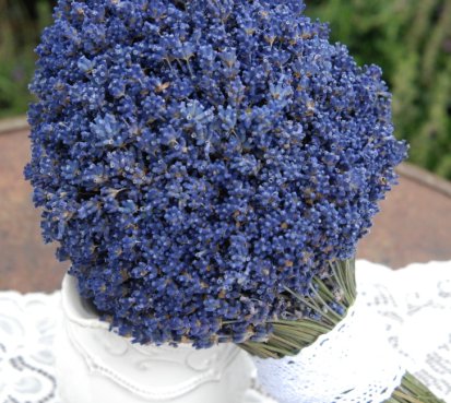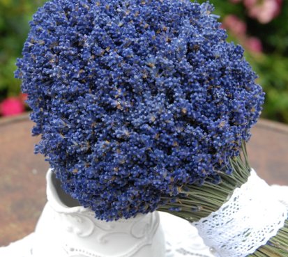 Kytice je uvázána ze sušené levandule, bude se hodit pro drobnější nevěstu