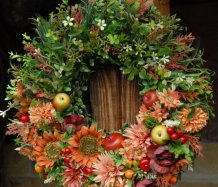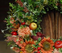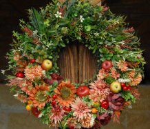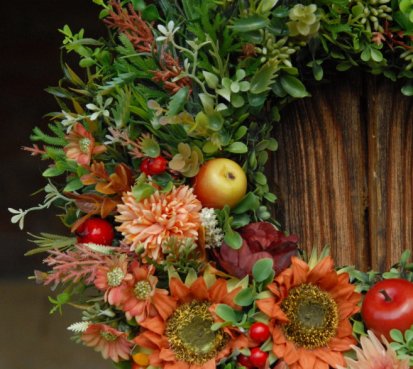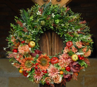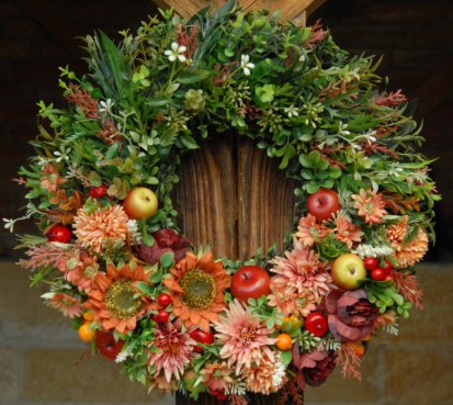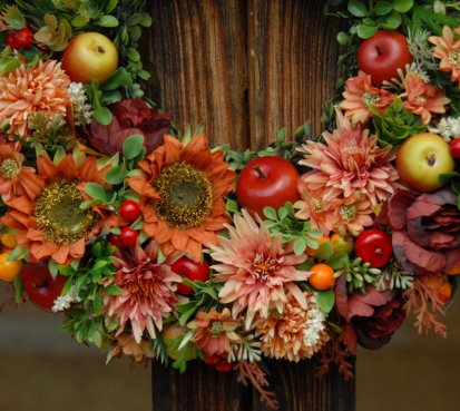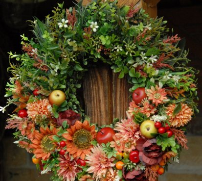 Velikánský bohatě zdobený věnec dokonalými umělými květinami
