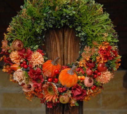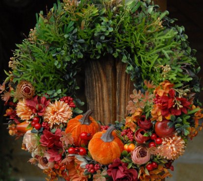 Luxusní podzimní věnec s dýněmi...rezervace pí Vojáčková