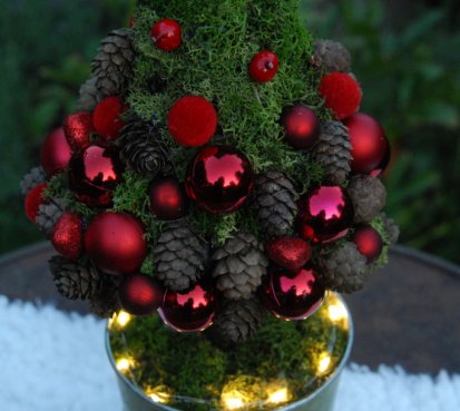 Vánoční stromeček je vytvořen z islandského lišejníku s velkým množstvím vánočních přízdob, zasazen do krásného plechového obalu....opatřen led světýlky