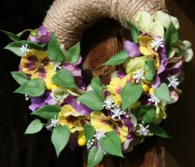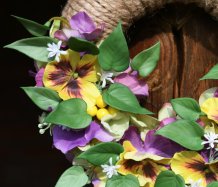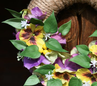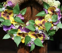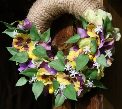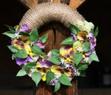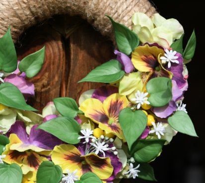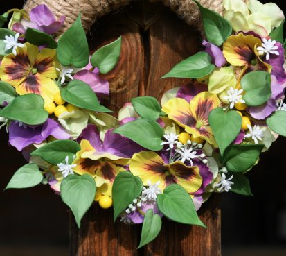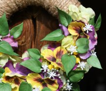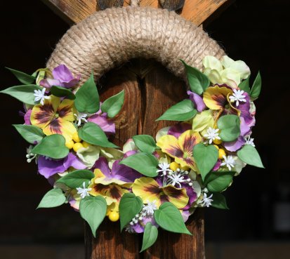 Věneček je bohatě zdoben dokonalými umělými květinami