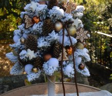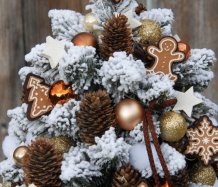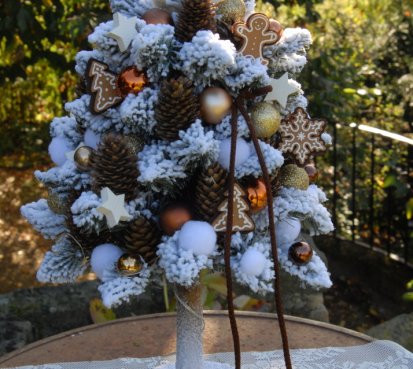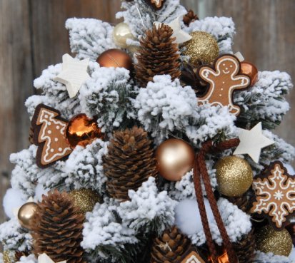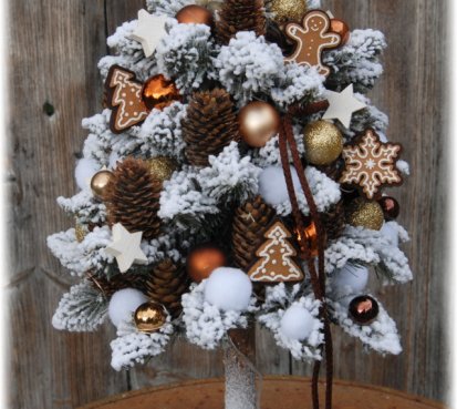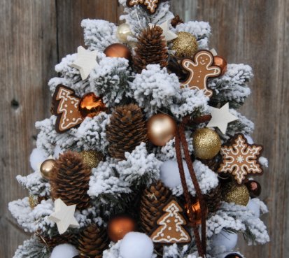 Strom je vytvořen z dokonalého umělého chvojí, nastříkán umělým sněhem, naaranžován krásnými umělými perníčky a vánočními přízdobami.....ve tmě svítí