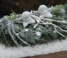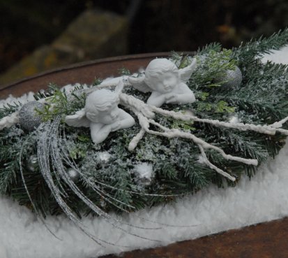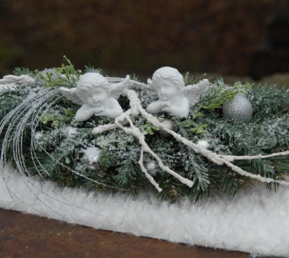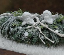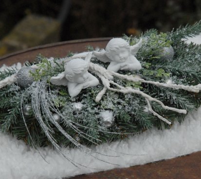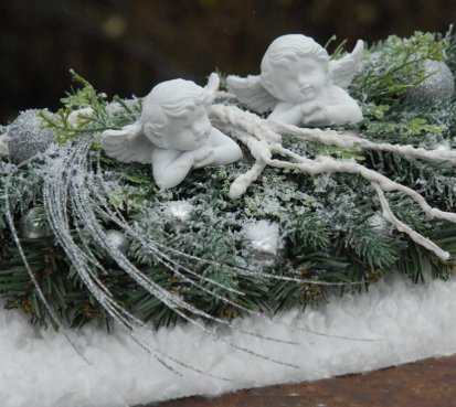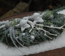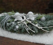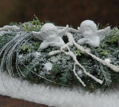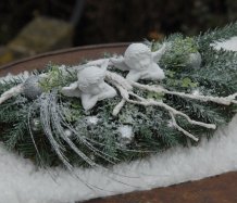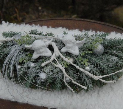 Dva krásní andělé jsou ozdobeni dokonalými jehličnany, kouličkami...