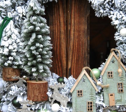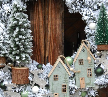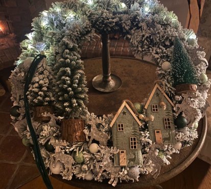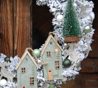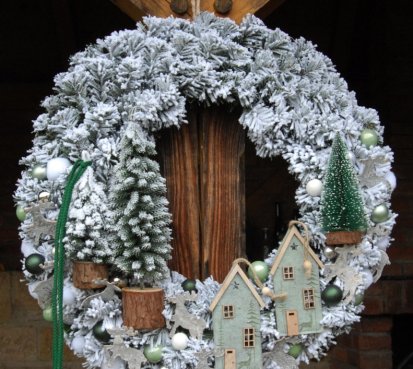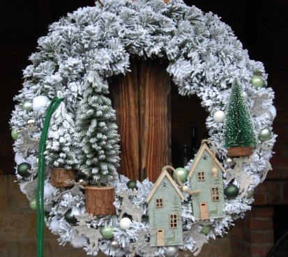 Obrovský vánoční věnec z umělého zasněženého chvojí s led světýlky