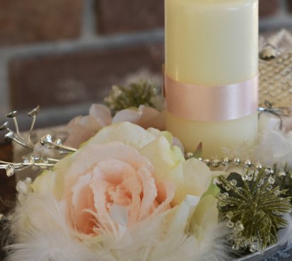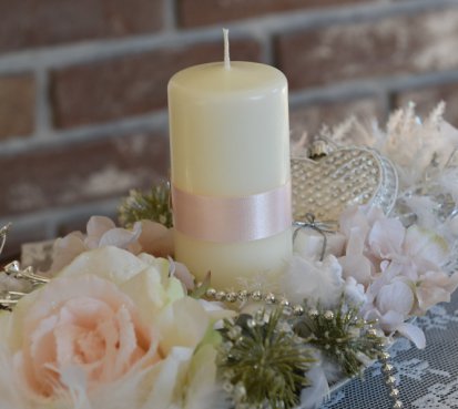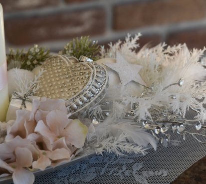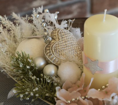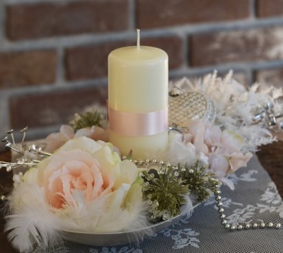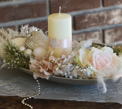 Luxusní romantická vánoční dekorace s vyměnitelnou svíčkou, umělými květinami, vánočními přízdobami...