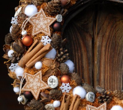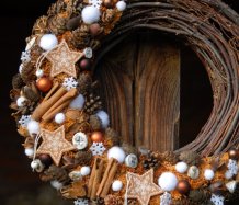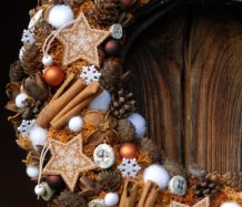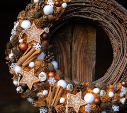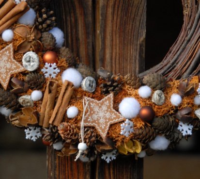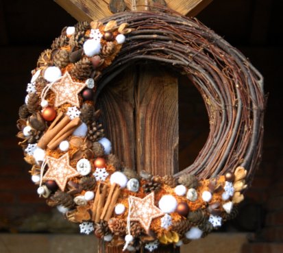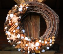 Korpus věnce je vytvořen z proutí, ozdoben vánočními přízdobami a přírodninami....krásné perníčky jsou z filcu
