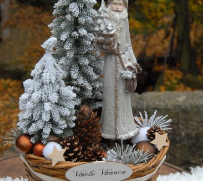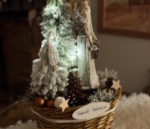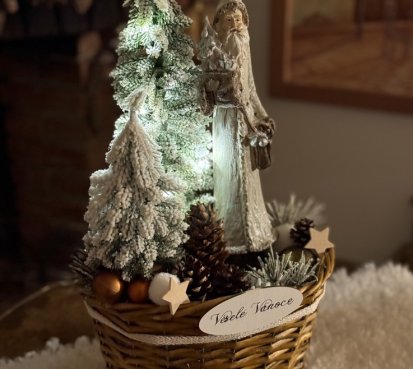 Bohatě zdobená vánoční dekorace s krásným Ježíškem z polyresinu.....je opatřena led světýlky