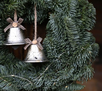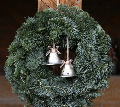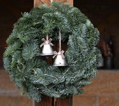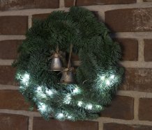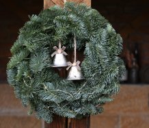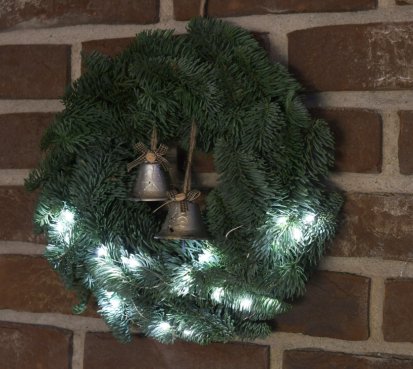 Věnec je vytvořen z čerstvé neopadavé jedle Nobilis, podsvícen led světýlky.... a zvonečky k tomu