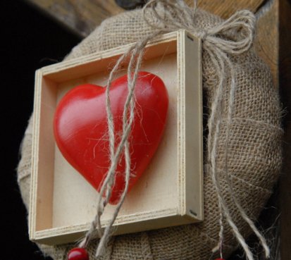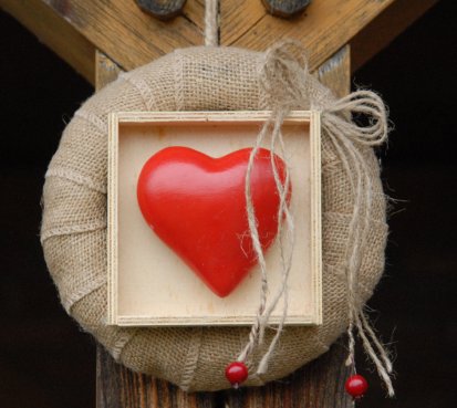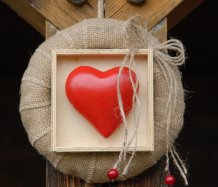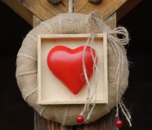 Věneček je vytvořen na pevném slaměném korpusu omotaném jutou, keramické srdce v dřevěné krabičce.....