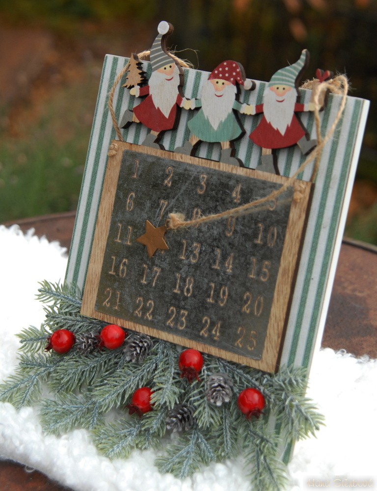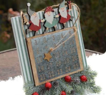 Vtipný adventní stojící kalendář nebo na zavěšení má magnetickou destičku a hvězdičku, tak si můžete posouvat jednotlivé dny až ke Štědrému dnu
