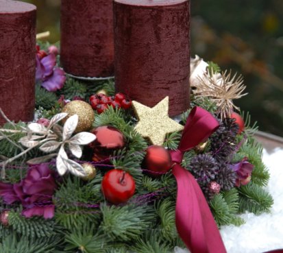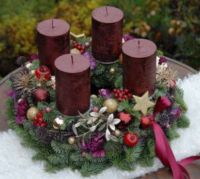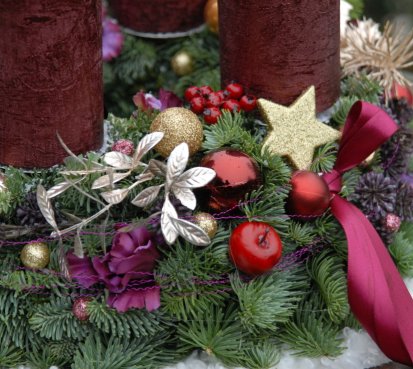 Velikánský věnec je vytvořen z čerstvé neopadavé jedle Nobilis s velkým množstvím vánočních přízdob...luxusní svíčky na bezpečnostních bodcích jsou vyměnitelné