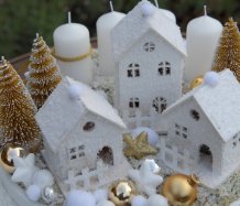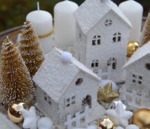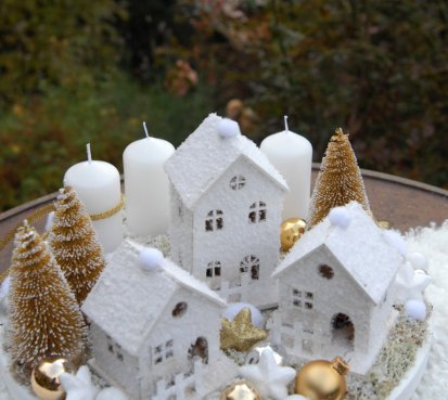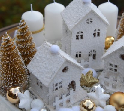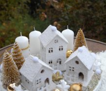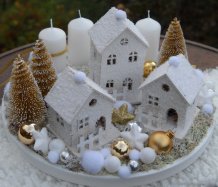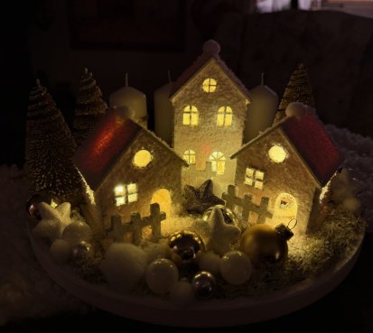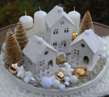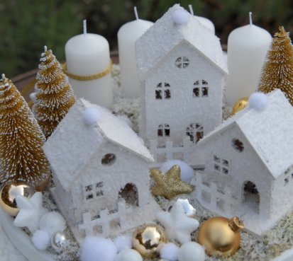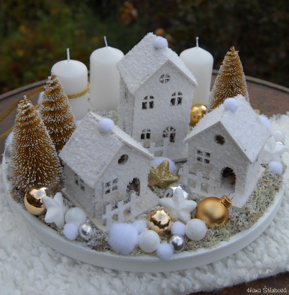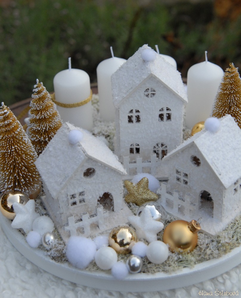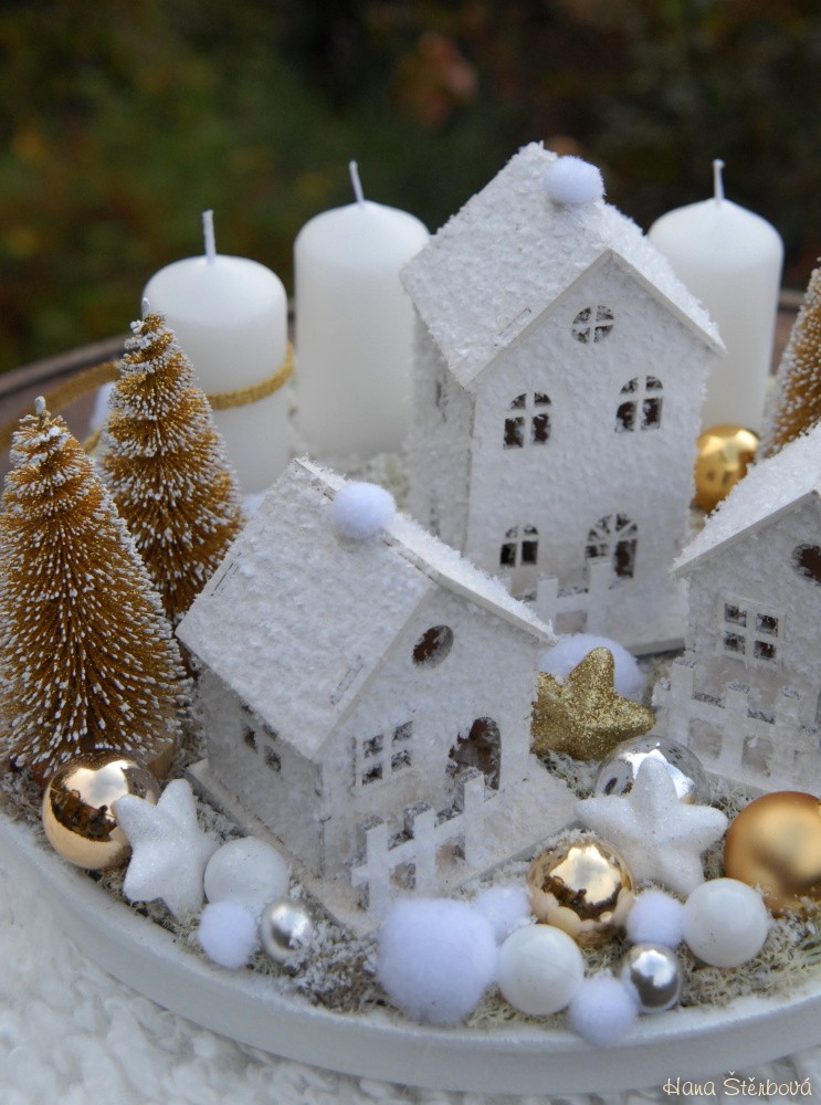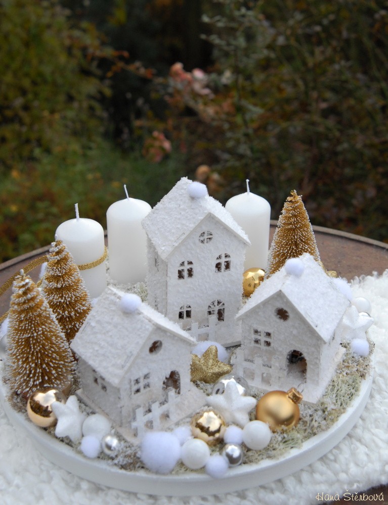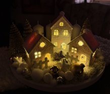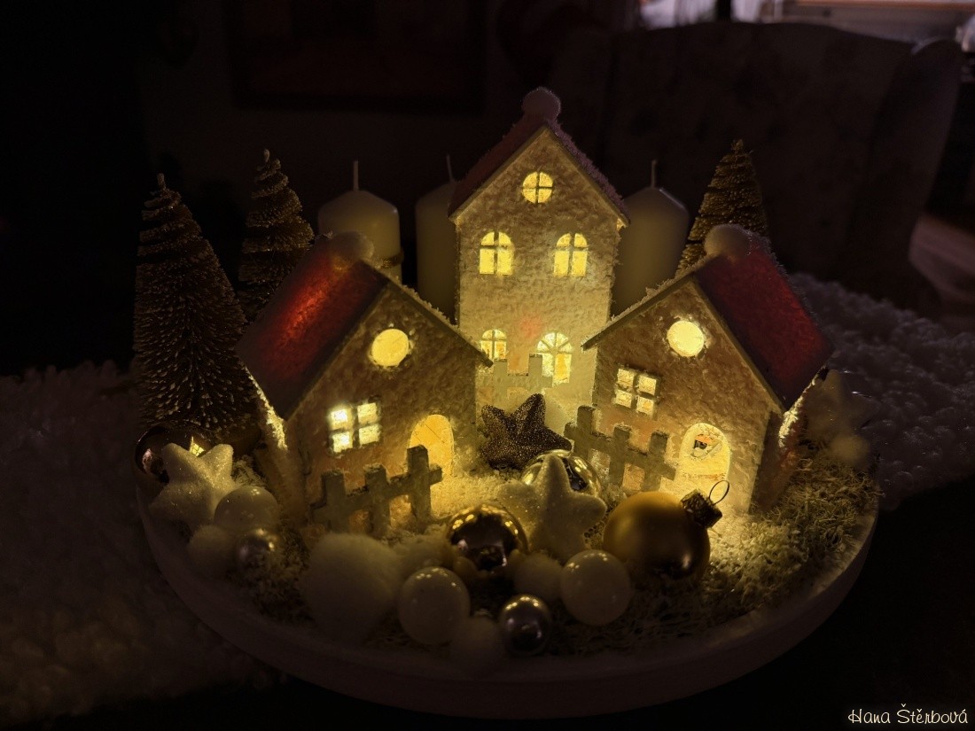 Bohatě zdobená dekorace s krásnými chaloupkami na led osvětlení
