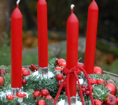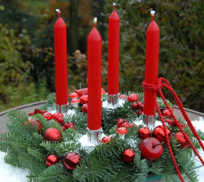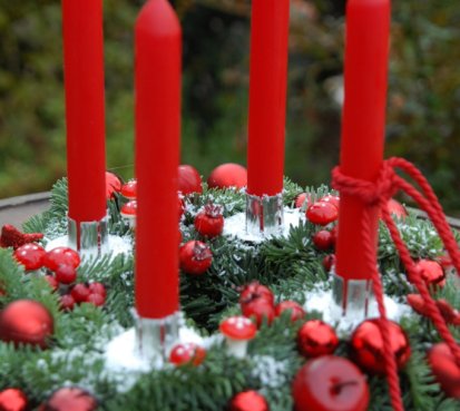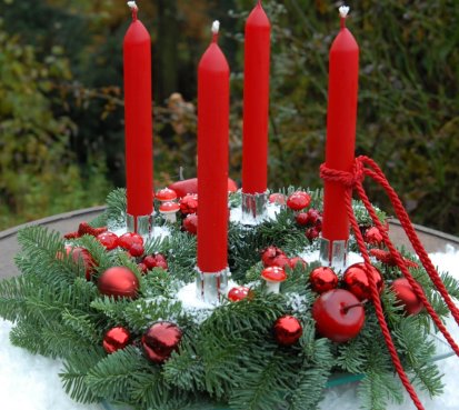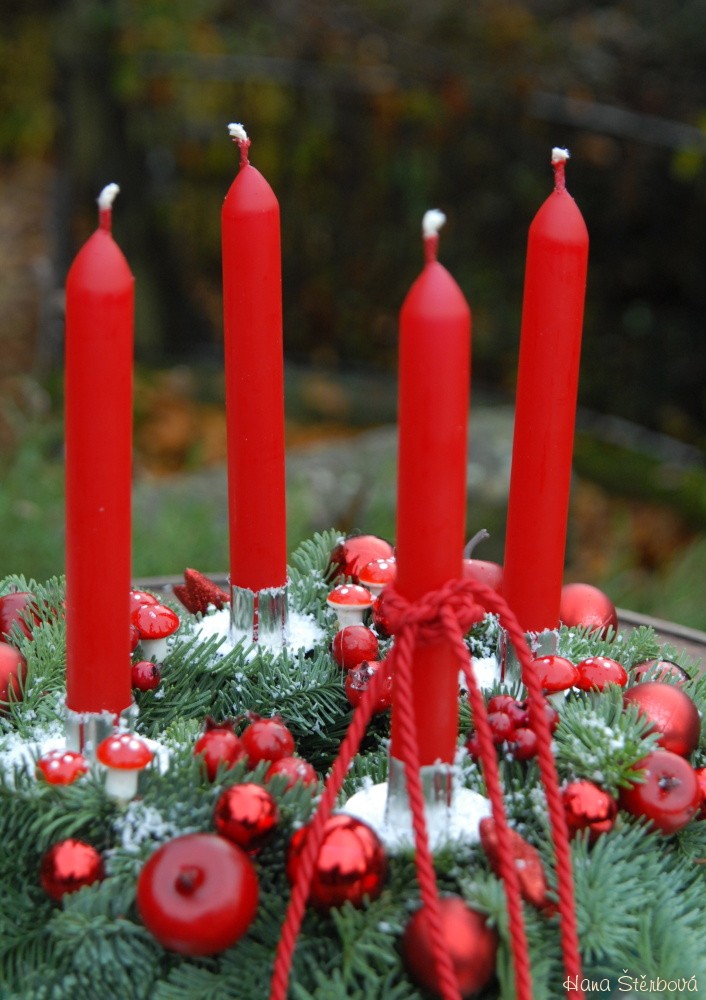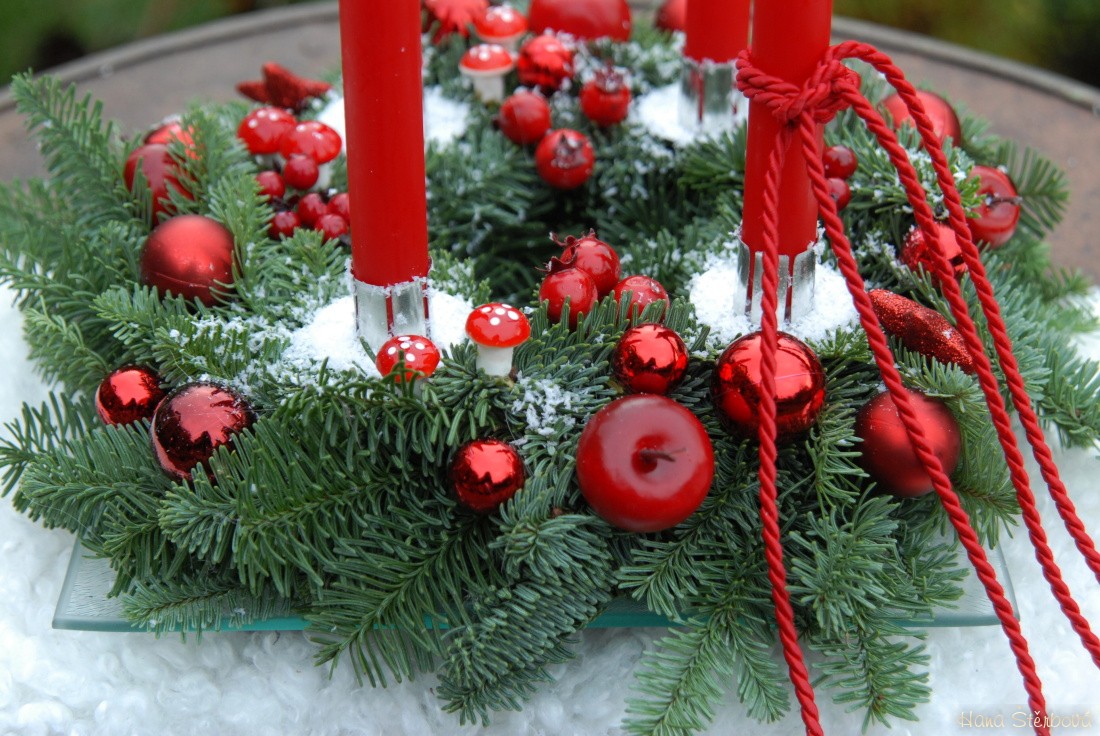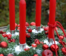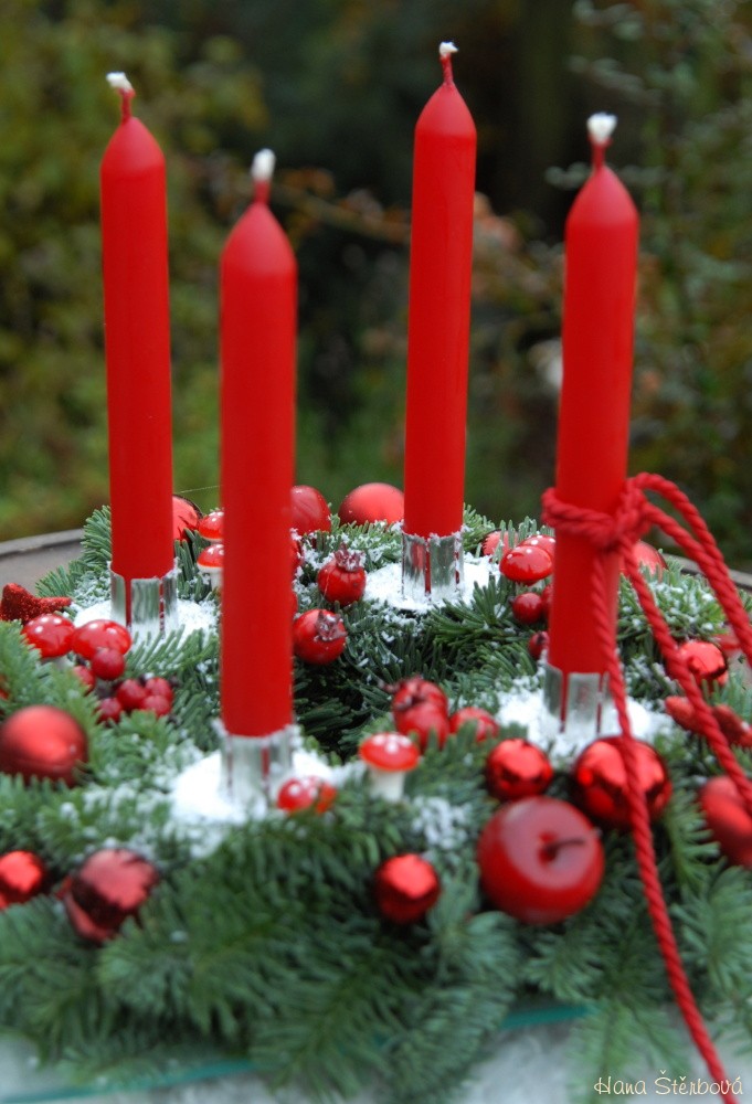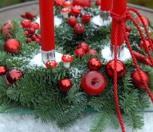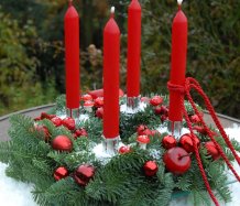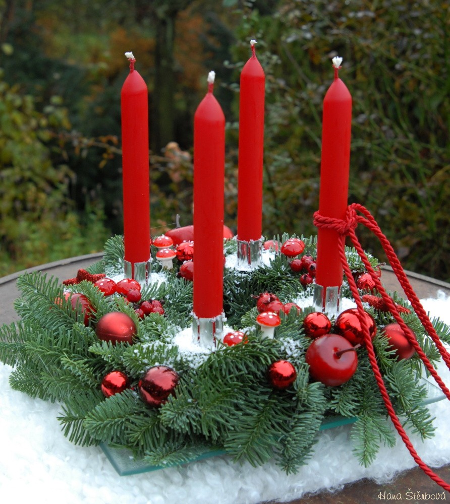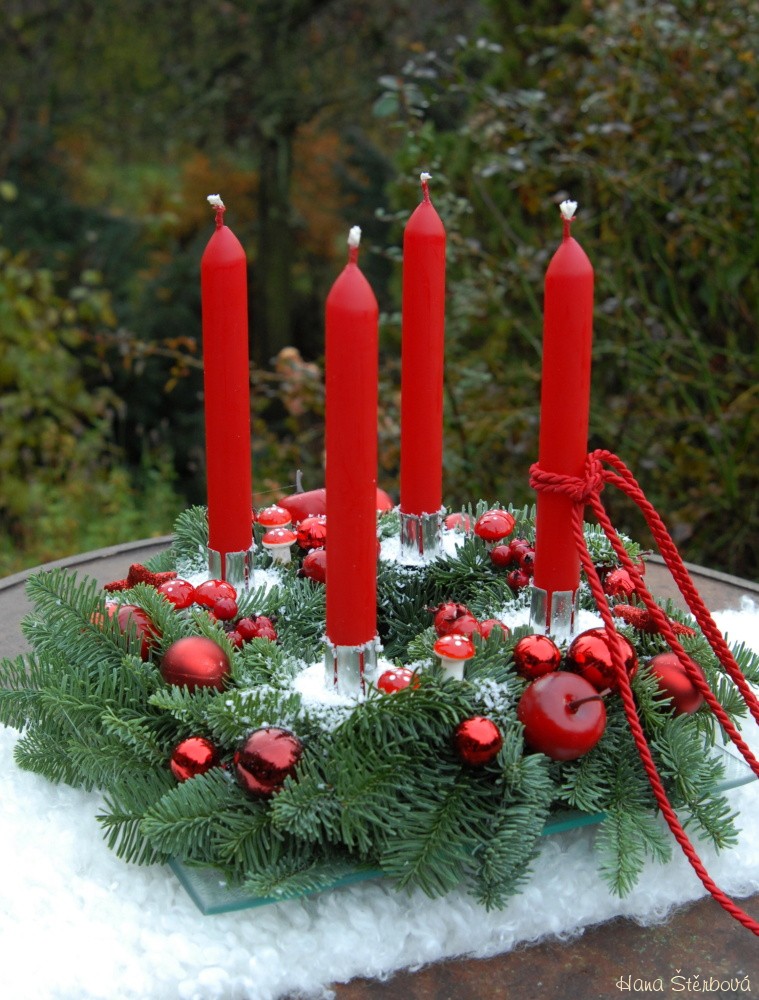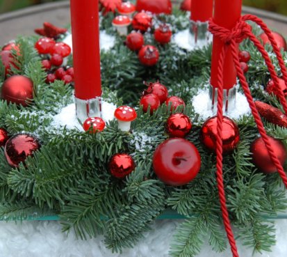 Věnec je vytvořen z krásné čerstvé jedle s vánočními přízdobami......je umístěn na skleněném podnosu