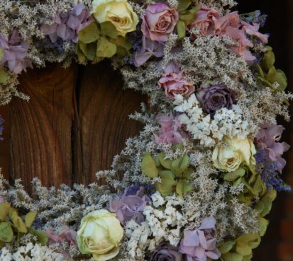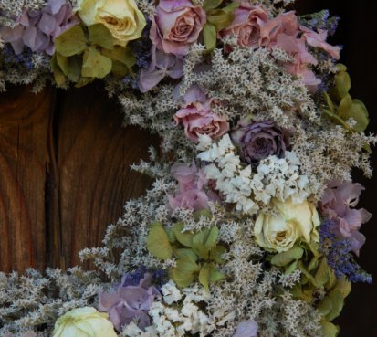 Veliký huňatý voňavý věnec ze sušených květin....romantická dekorace do vašeho domova