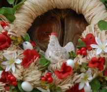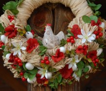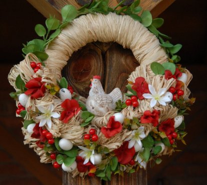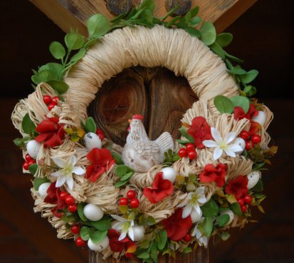 Bohatě zdobený věnec s krásnou slepičkou...