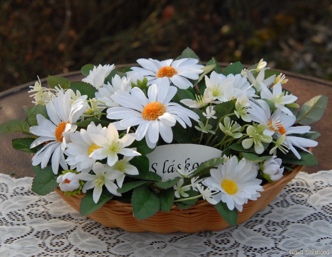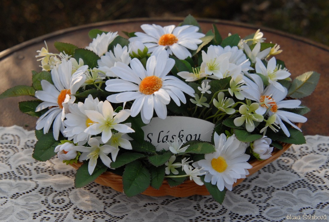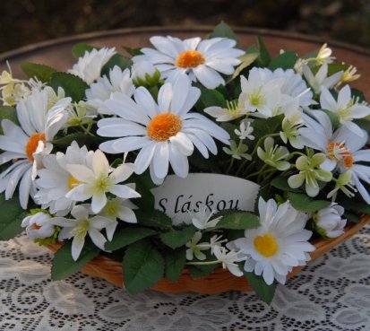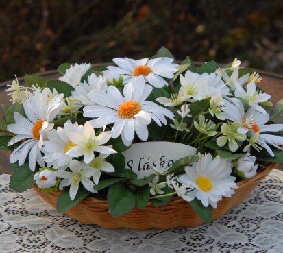 Kopretinová smuteční dekorace na hrob