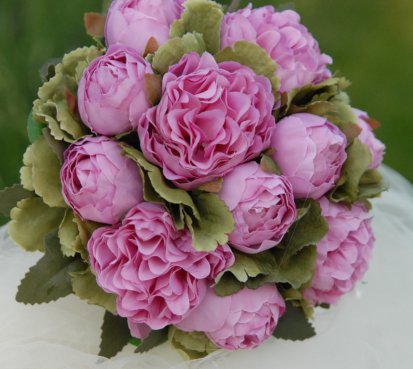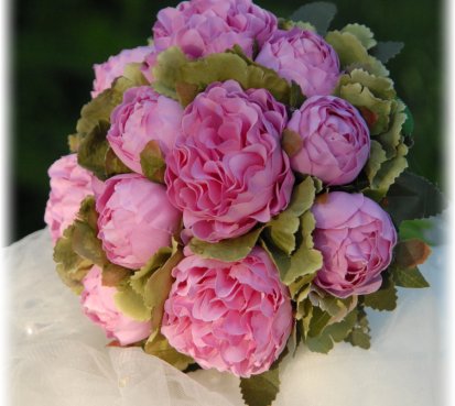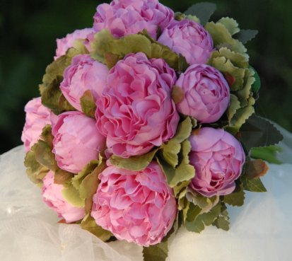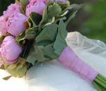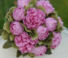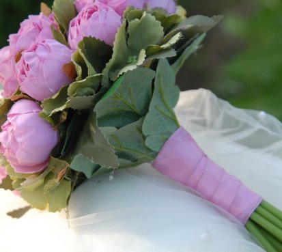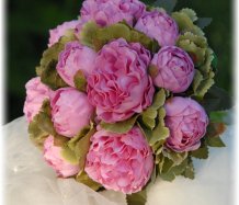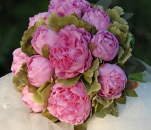 Kytice je uvázána z dokonalých látkových pivoněk....bude se hodit pro drobnější nevěstu