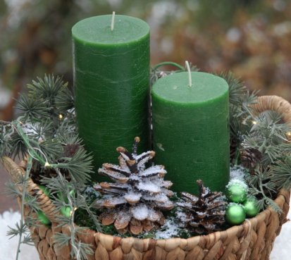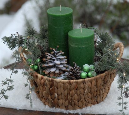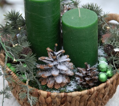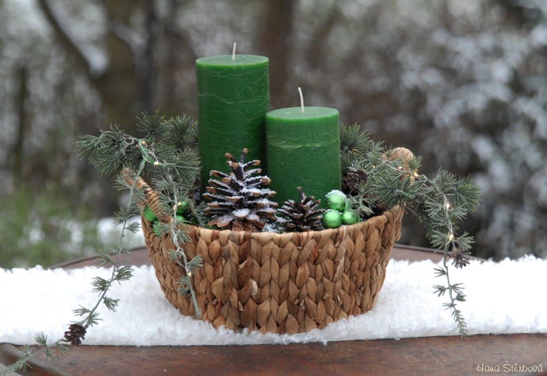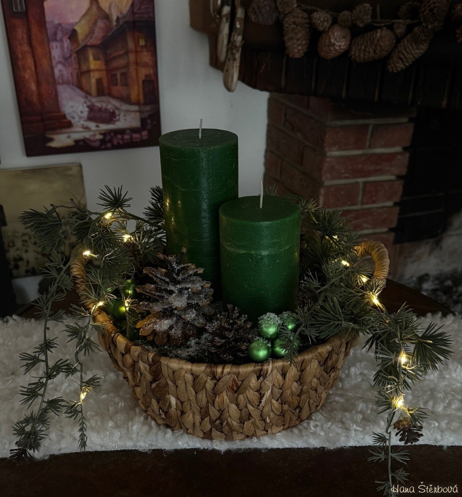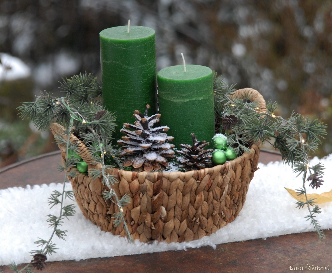 Vánoční dekorace v přírodním stylu je naaranžována do krásného košíku....s led světýlky