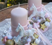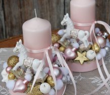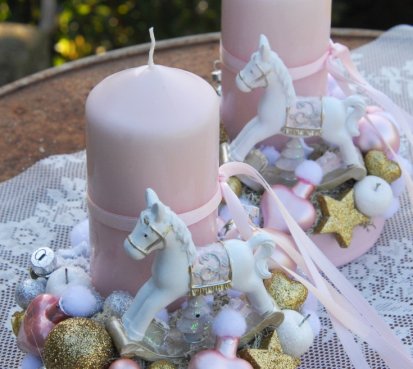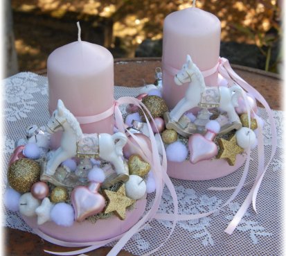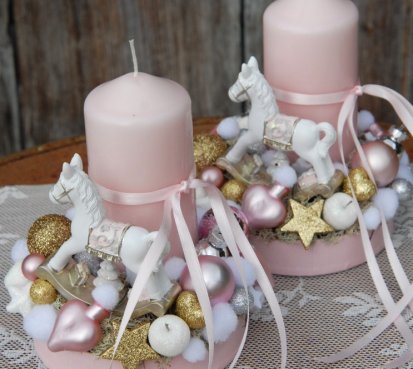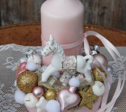Bohatě zdobený svícen s vyměnitelnou svíčkou na bezpečnostním bodci.....krásný koník z polyresinu k tomu