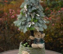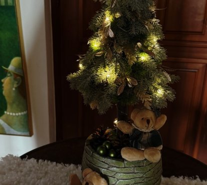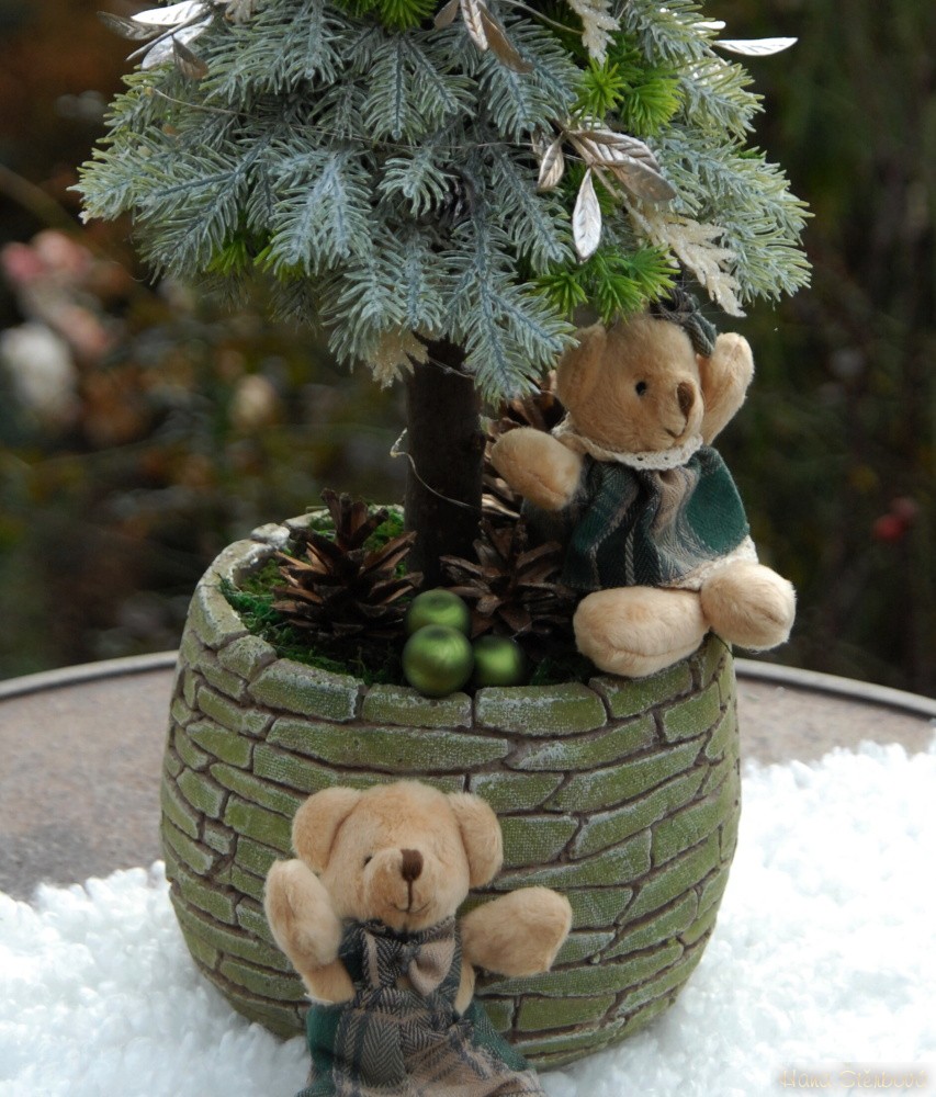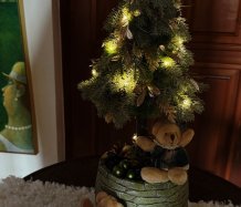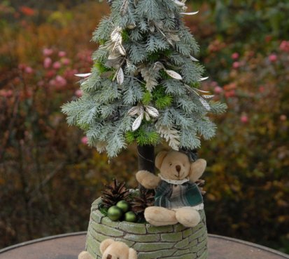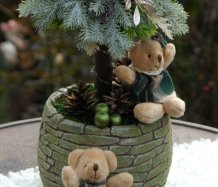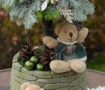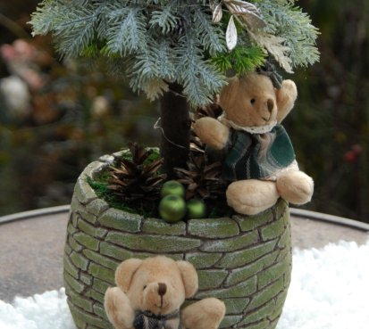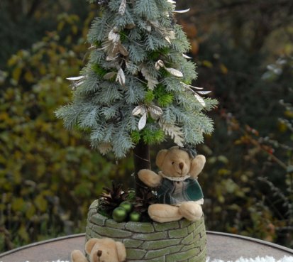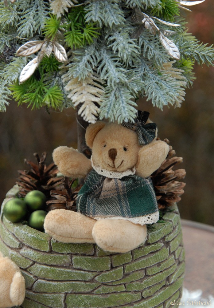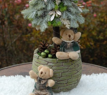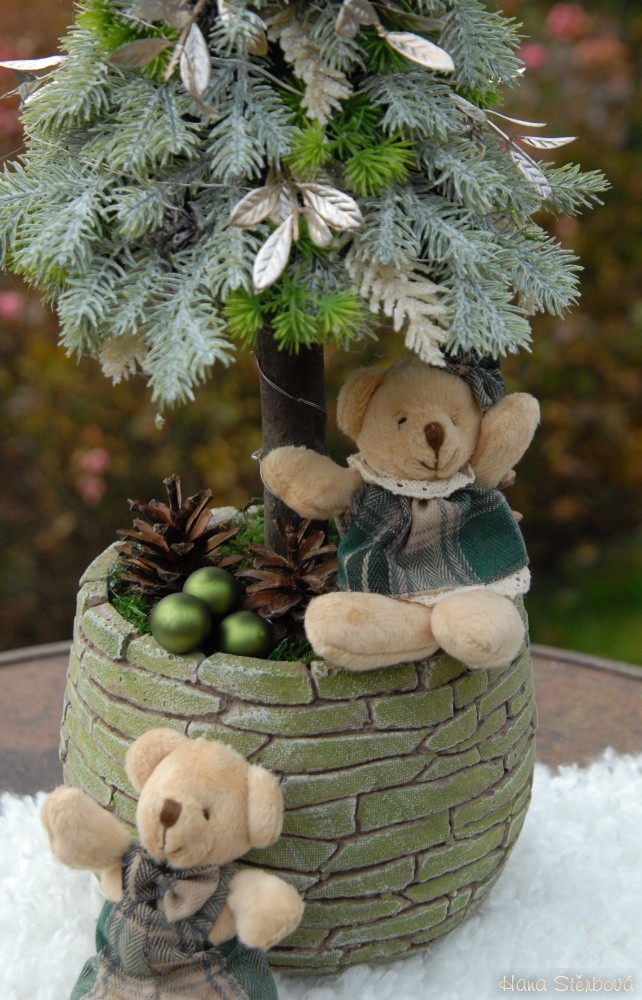 Veliký vánoční stromeček je vytvořen z dokonalých umělých jehličnanů, zasazen do krásné keramické nádoby a opatřen led světýlky....dva krásní plyšáčci k tomu