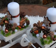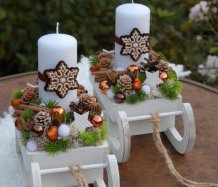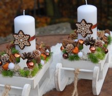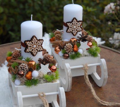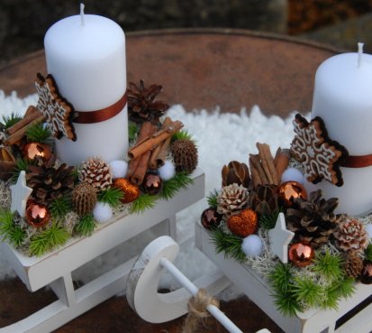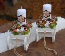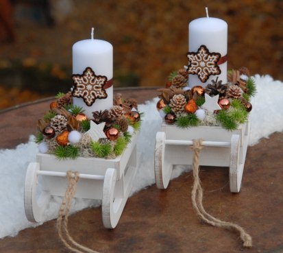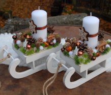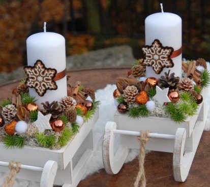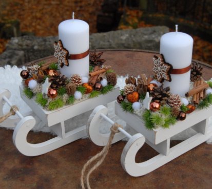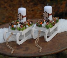 Dřevěné sáňky jsou bohatě zdobené vánočními přízdobami, perníčky jsou z filcu....svíčka na bezpečnostním bodci je vyměnitelná