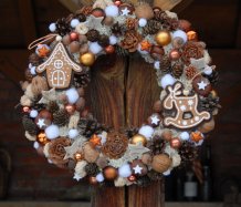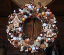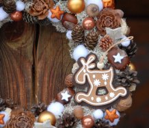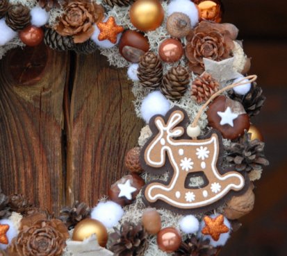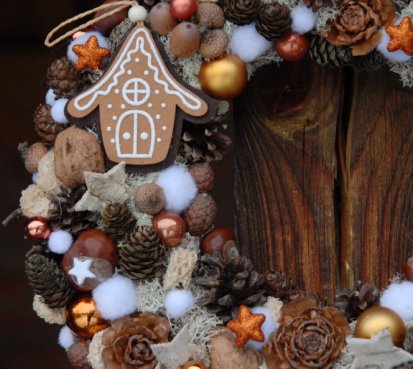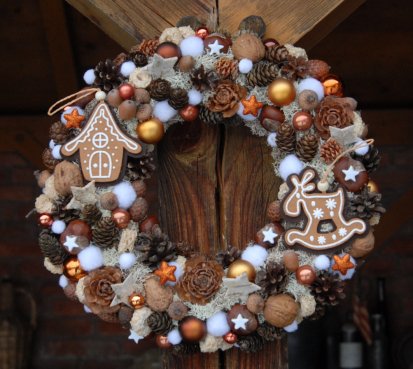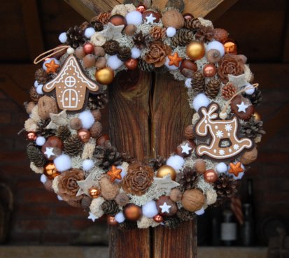 Krásný závěsný věnec je vytvořen na pevném korpusu bohatě zdoben kouličkami a přírodninami....krásné perníčky jsou z filcu