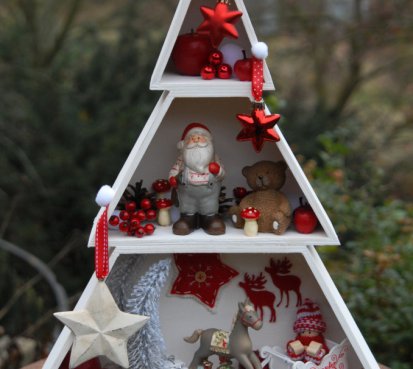 Opravdu velký vánoční dřevěný strom je naplněn velkým množstvím vánočních postaviček a přízdob...krásná dekorace do Vašeho domova