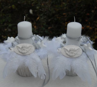 Romantický svícen s vyměnitelnou svíčkou na bezpečnostním bodci ......a k tomu péřová andělská křídla a mnoho vánočních přízdob